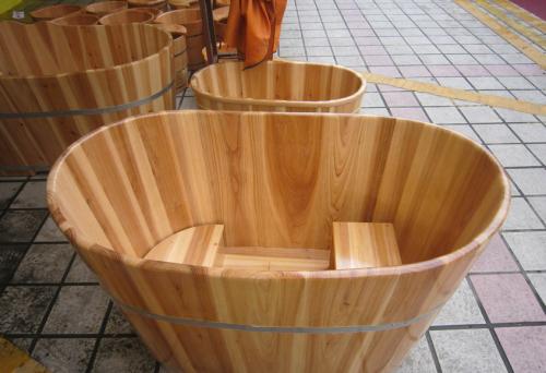 木桶的形状不能够随心所欲,好处是木材质感泡澡舒服,水够深,大小可以定做。